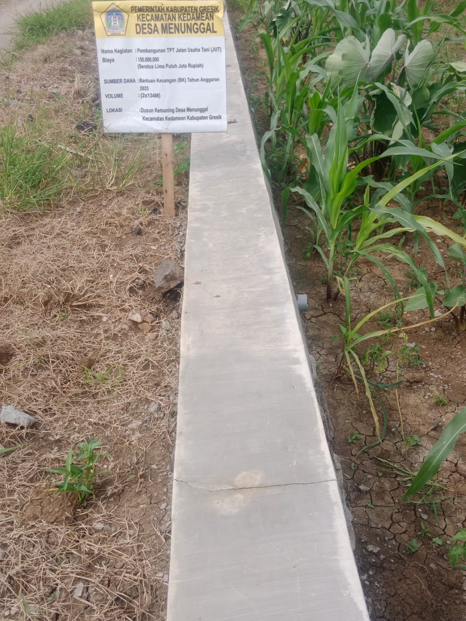 Dari pantauan wartawan dilapangan, tidak ada pembangunan TPT jalan usaha tani di dusun Kemuning akhir akhir ini, namun tiba tiba ada banner yang menyatakan bahwa ada pembangunan TPT jalan usaha tani sepanjang 2×134 meter dengan anggaran yang berasal dari BK (Bantuan Keuangan) Kabupaten Gresik tahun 2025 sebesar Rp.150 juta.