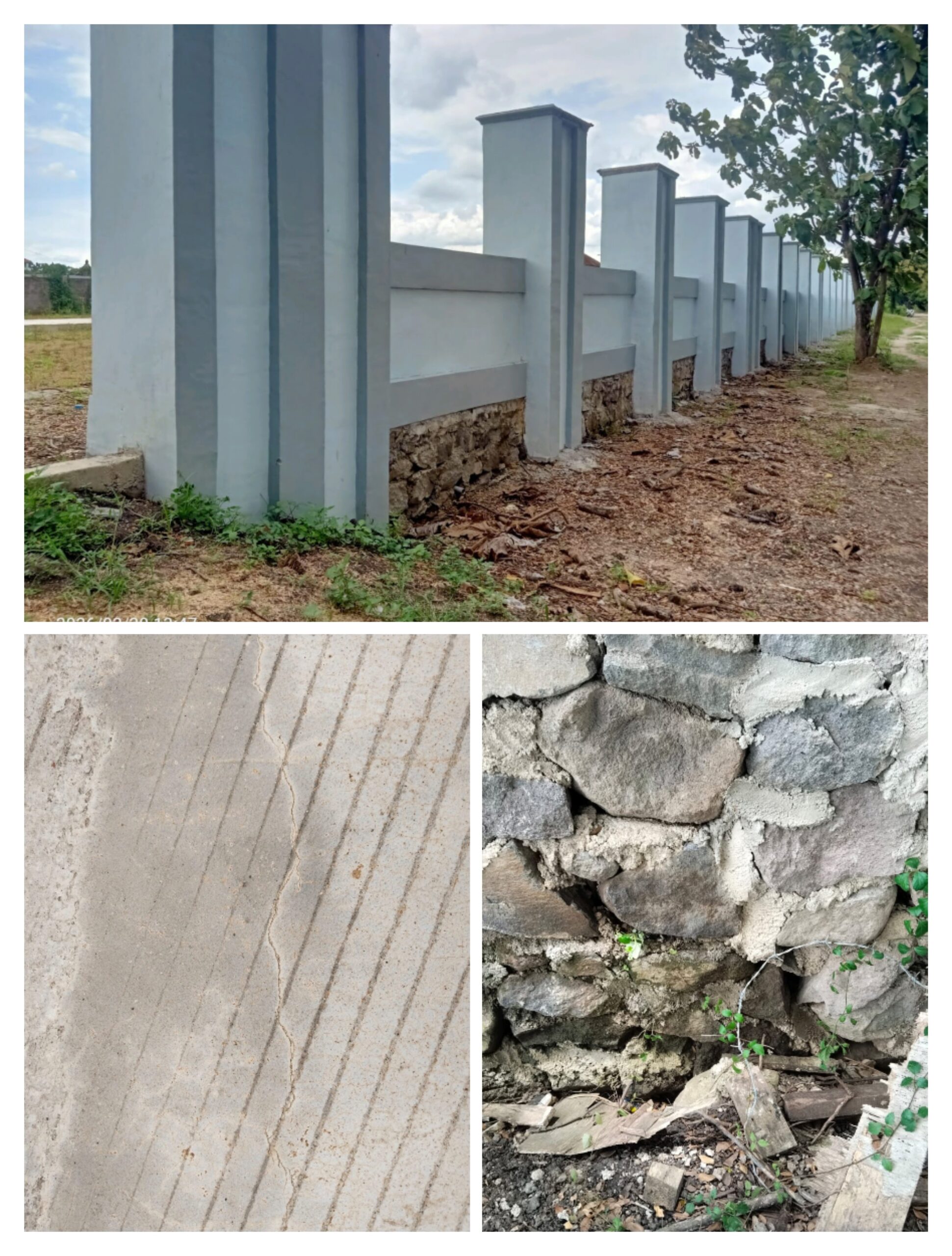 Pagar pengaman lahan pun diduga hanya dibangun sebagian, sementara sisanya sekadar memanfaatkan pagar lama, padahal dalam spesifikasi disebutkan pembangunan pagar harus mengelilingi seluruh area belakang Distan-KP.